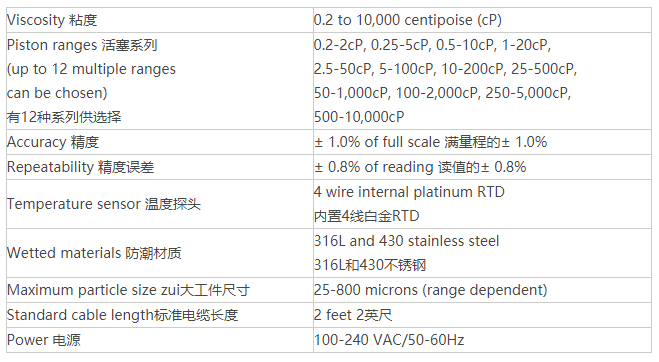 Cambridge Viscosity VISCOlab 4000粘度計(jì)規(guī)格說(shuō)明: