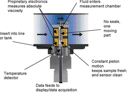 通用汽車的電子動機部門使用劍橋粘度計在他們最新的H-series 6000馬力的引擎來監測燃料稀釋和其他特征的實時潤滑油。除通用,法拉利,路博潤公司,Equilon特古梅斯,美國海軍,美國軍隊和許多別人已經發現劍橋的理想潤滑和粘度計監測液壓油監控健康和預測失敗的石油。劍橋粘度計基本上是簡單、崎嶇、精確和重復的操作環境具有顯著振動盡管。一個關鍵的技術就是它的公司使用一個單一的、非接觸式運動部件都來清潔和測量。活塞的運動控制,以便它可以監控流體粘度和使傳感器的測量室清潔,所以,該傳感器至少需要操作員注意。溫度探測器也包含在測量室,這樣兩個溫度和粘度出名的是每一個測量。該公司獲得專利的自動清潔的特點使得劍橋傳感器操作和on-engine無故障內聯。
