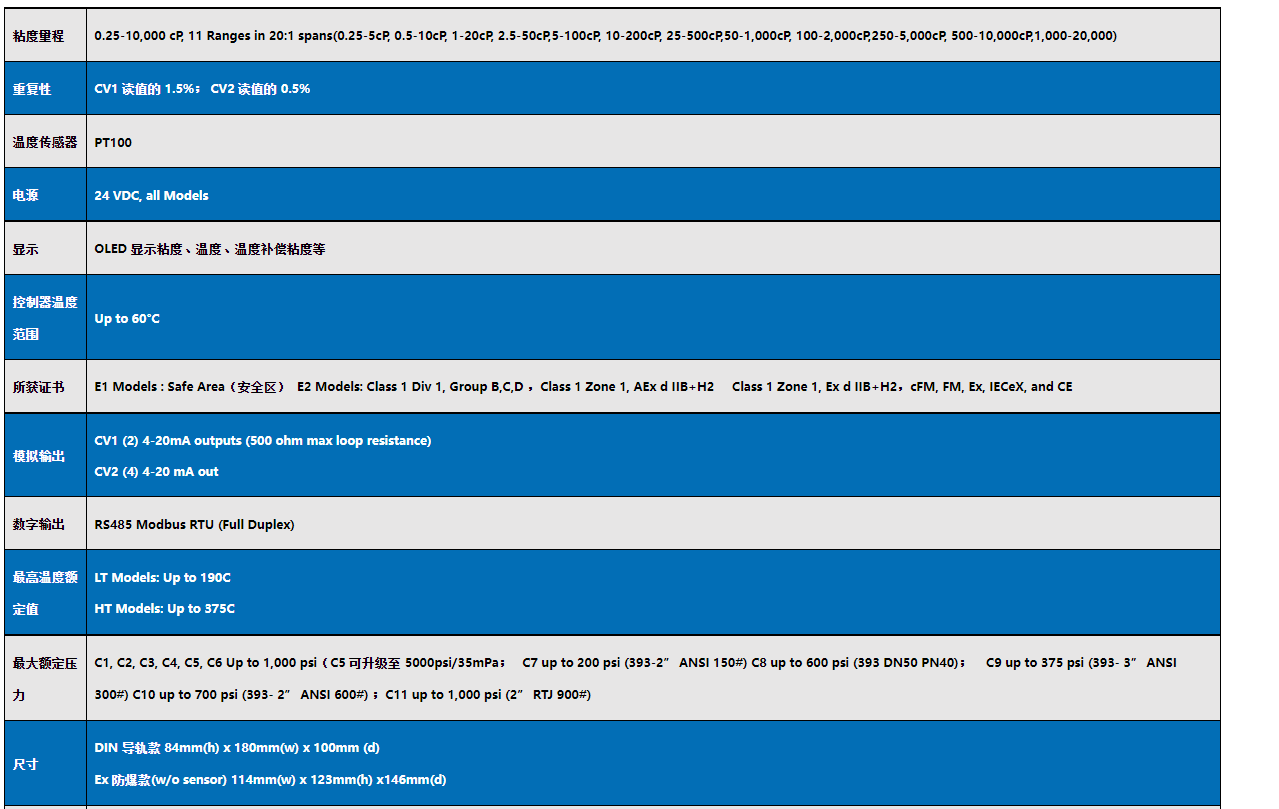 1.VISCOpro2000:ViscoPro 2000是單線監測和控制應用的理想選擇,它將強大的電子設備與我們創新的傳感器技術結合在一個自動粘度計中。ViscoPro 2000為連續、可靠、準確的粘度測量提供自動流體監測。