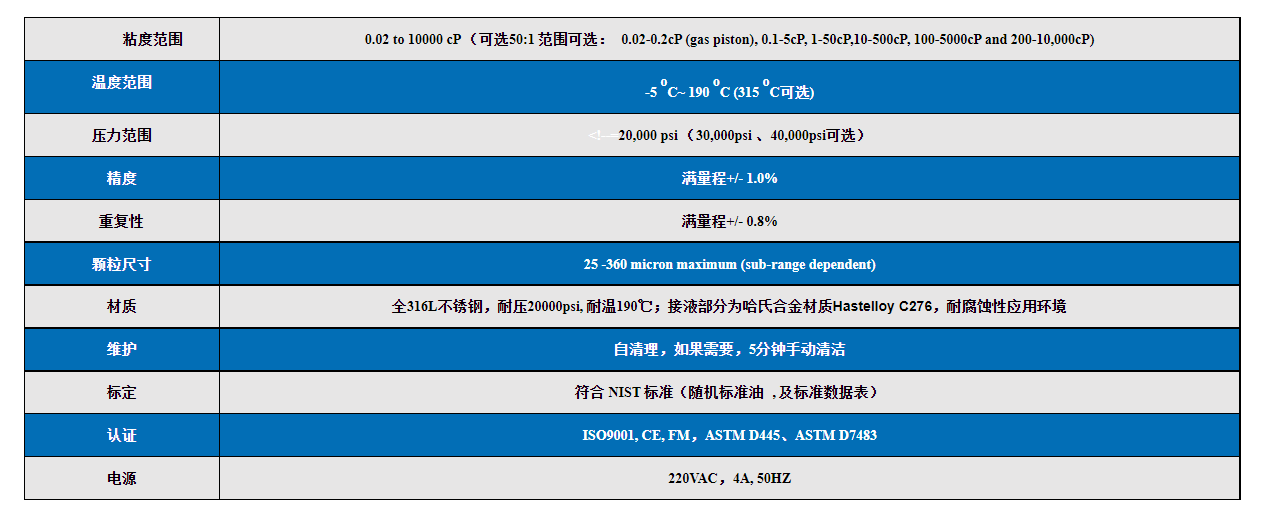 1.高溫高壓粘度計(VISCOlab PVT+):劍橋粘度公司的ViscoLab PVT+(壓力-體積-溫度)是在高溫和高壓下測定粘度的全球?qū)嶒炇覙藴?。ViscoLab PVT+高壓粘度計設(shè)計用于儲層流體分析、相態(tài)行為、超臨界流體和其他研發(fā)應(yīng)用中的粘度和溫度測試。
