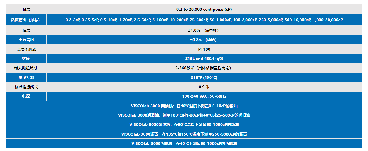 2.VISCOlab3000實驗室粘度計:當粘度測試需要在特定溫度下測試樣品材料時,劍橋粘度公司的ViscoLab 3000粘度計是理想選擇。ViscoLab 3000就是所需的全部——不需要單獨、笨重、響應(yīng)速度慢的水浴系統(tǒng)。應(yīng)用領(lǐng)域包括研發(fā)、質(zhì)量控制實驗室和測量VI指數(shù)的機油粘度。